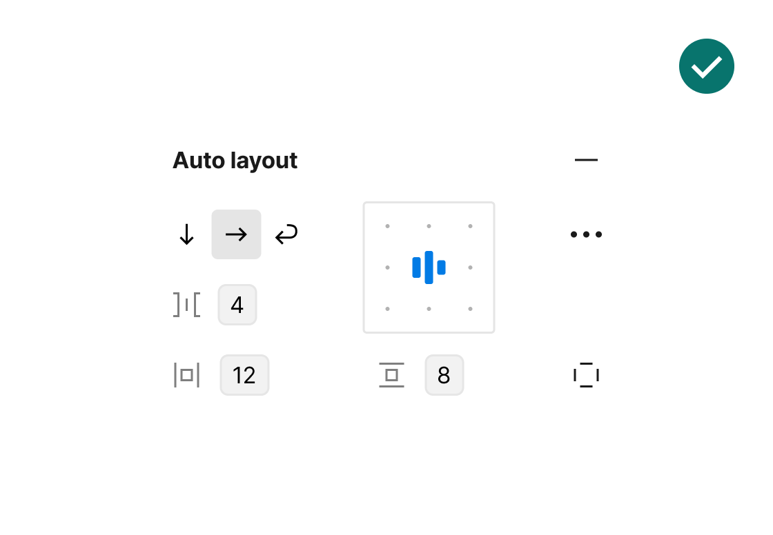 Components that have few variants use auto layout in the parent container, so the component’s variants are organised in space.