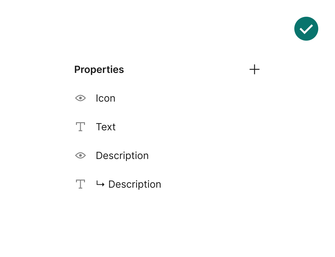 Keeping a short name will prevent it to cut in the properties panel. The property and layer icons can complement what it is and help avoid redundancies. For example, instead of naming a property “Show icon”, it can be just “Icon”.