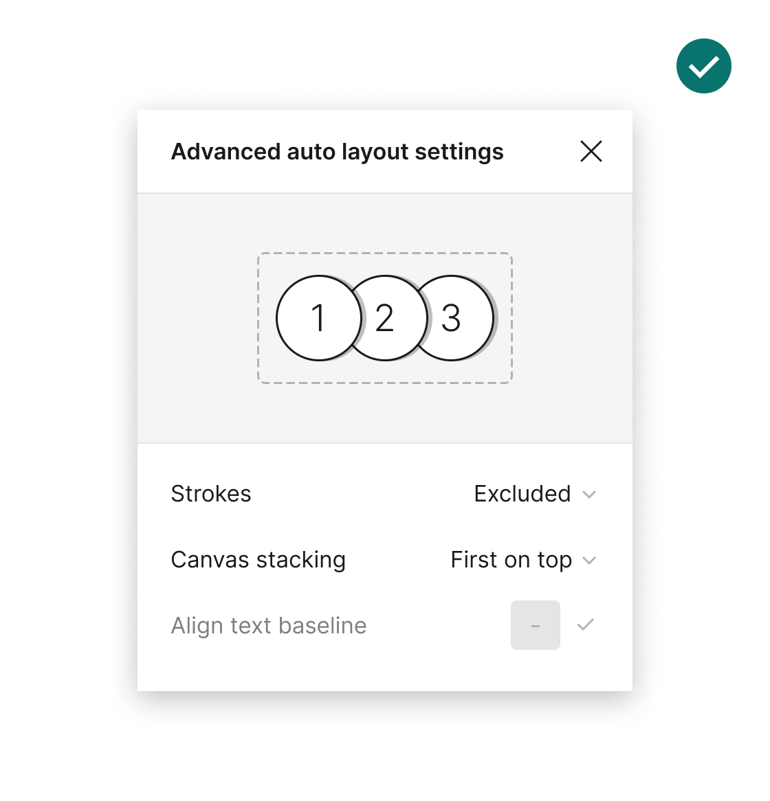 Adjusting the advanced auto layout settings to "First on top" within the "Canvas stacking" option ensures that the top layer is positioned above the content. This aligns with the canvas's layer order, enhancing the coherence between the layering model and the on-screen representation.