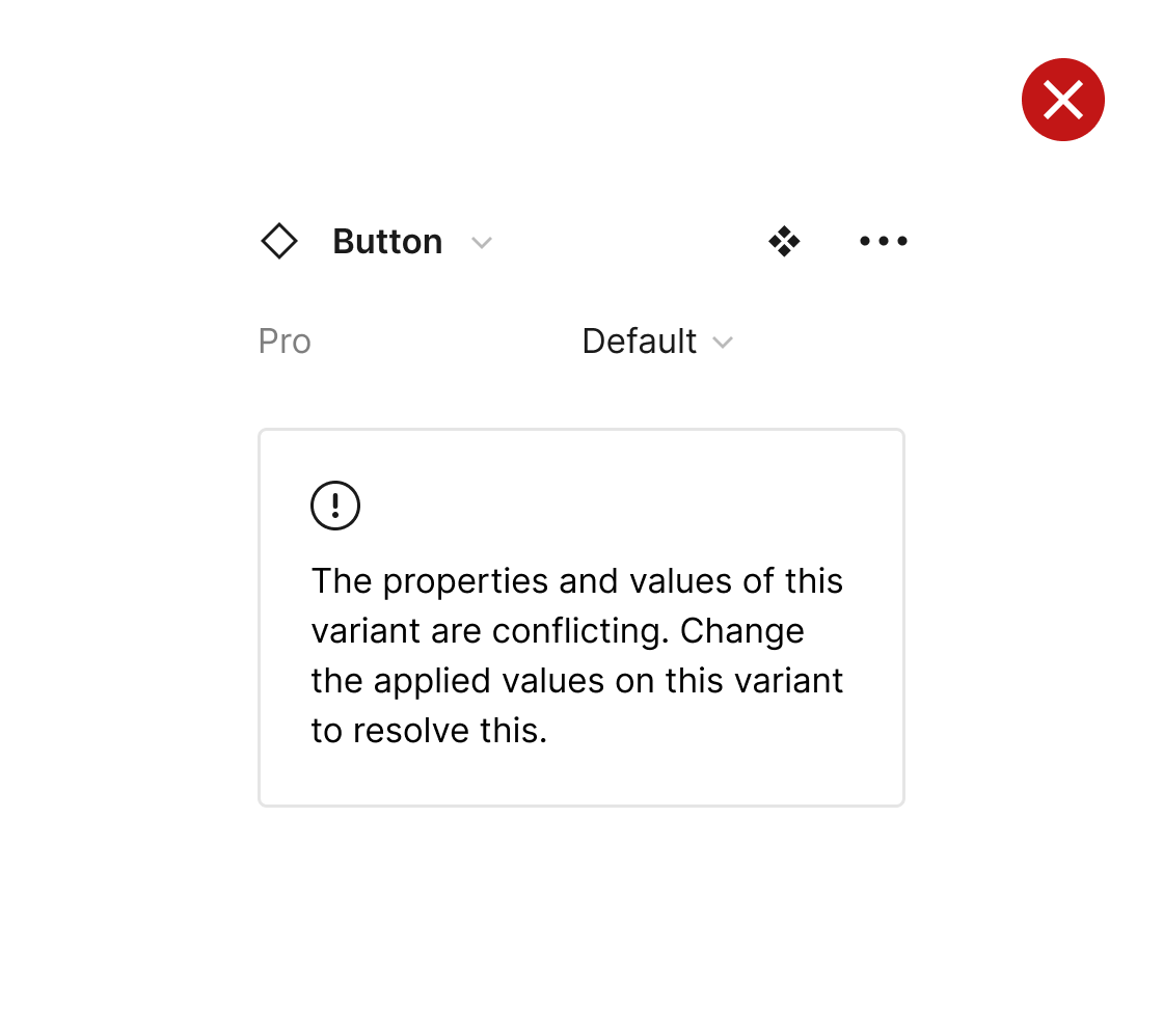 Confirm that components do not display any alerts for conflicting properties, otherwise they won't be suitable for publishing as part of a library. To solve. this issue, make sure that variants are using different values between them.